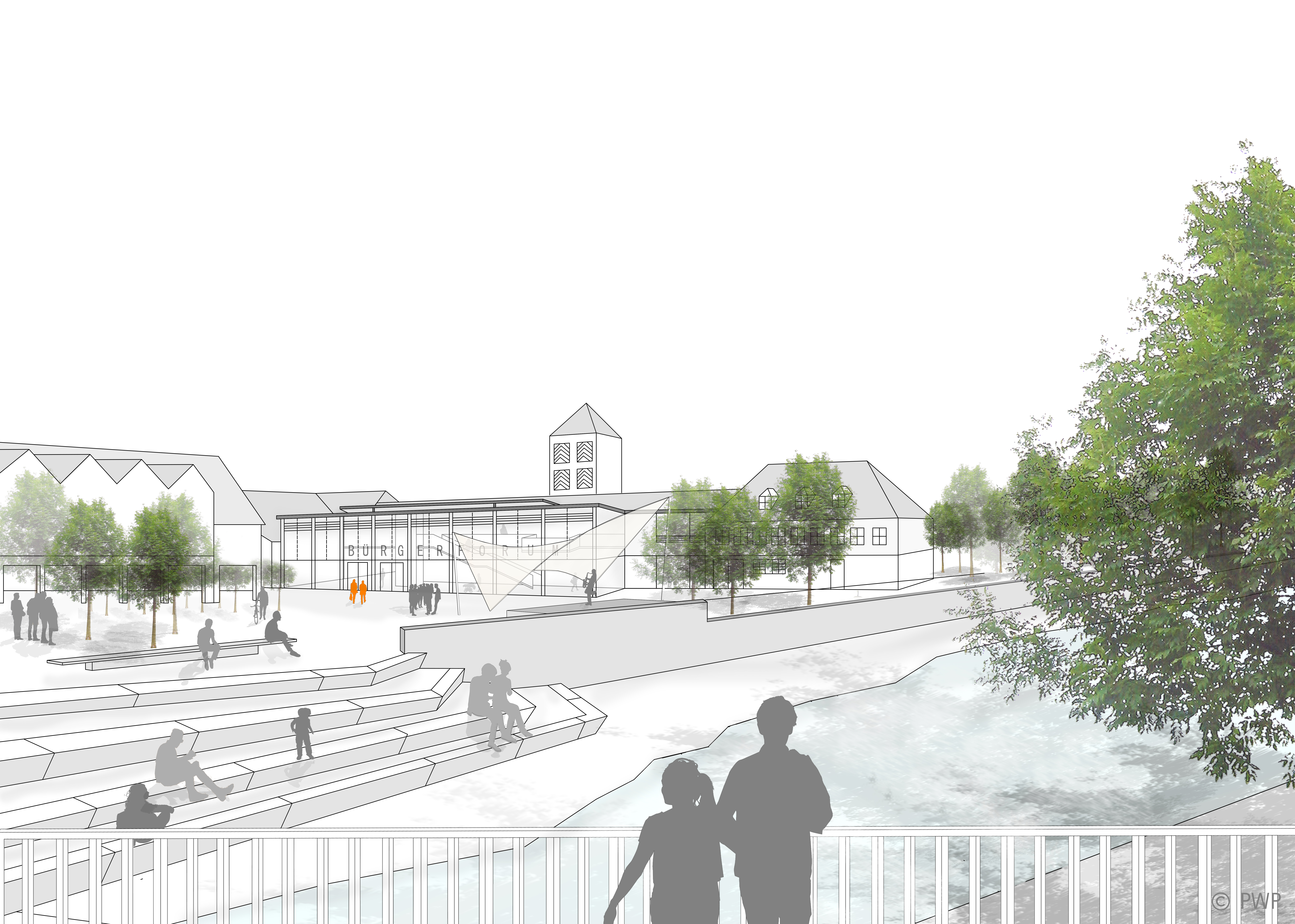 Die rege Nutzung des Marktplatzes für kulturelle Ereignisse erfordert eine räumliche Öffnung und Erweiterung des Bürgerhauses auf den Marktplatz.