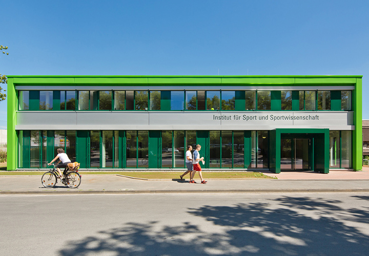 Der Erweiterungsbau des Instituts für Sport und Sportwissenschaften mit einem zusätzlichen Kraft- und Fitnessraum, einer neuen Mediathek sowie Büroräumen für das Institut ist fertiggestellt.