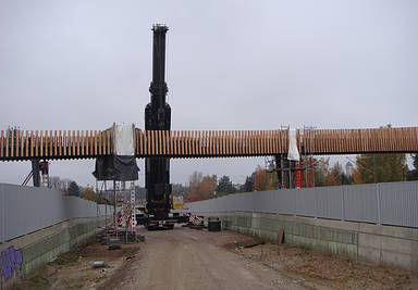 Fußgängerüberführung Stahl- + Holzkonstruktion über B6 und Bahntrasse