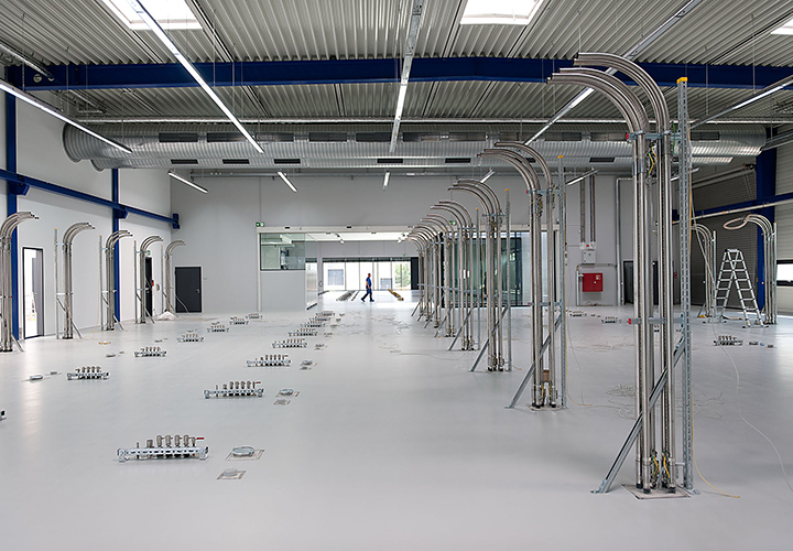 Zur Zeit läuft die Erprobungsphase der FTS (fahrerlosen Transportsysteme) und der Maschineneinrichtung.