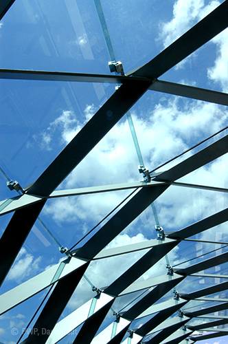 Diese rautenförmige Konstruktion wurde von PWP aus verschnittenen Ellipsen entwickelt und mit punktgehaltenen Gläsern (Zulassung im Einzelfall) als Windschutz bekleidet.
