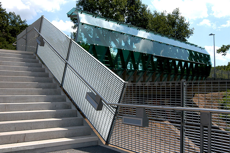 Der Haltepunkt der neu eingerichteten Odenwaldbahn entstand in nächster Nähe zu den Gebäuden der Technischen Universität (Entfernung ca. 200 m) in landschaftlich anspruchsvoller Situation.