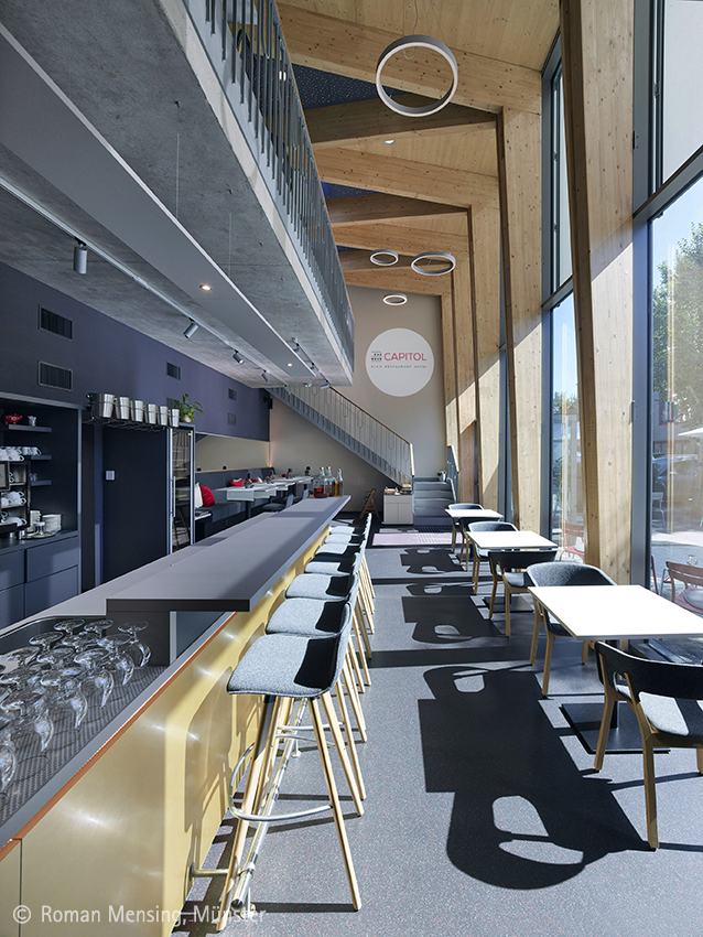 Als zusätzlicher Baustein rundet das neue Restaurant mit Bar mit einem offenen, 2-geschossigen Ambiente funktional das Nutzungskonzept ab.