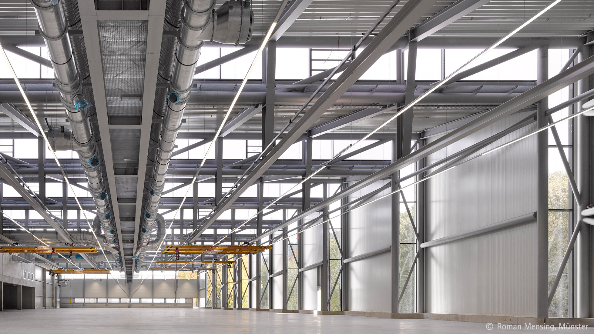 Fabrikneubauten beinhalten heute Produktionssequenzen, sogenannte Fraktale, in denen standort- und unternehmensübergreifend vernetzt Bauteile entwickelt, hergestellt und weltweit eingesetzt werden. Die Unbestimmtheit zukünftiger Aufgaben erfordert ein Höchstmaß an Flexibilität und Qualität der technischen Ausstattung.
