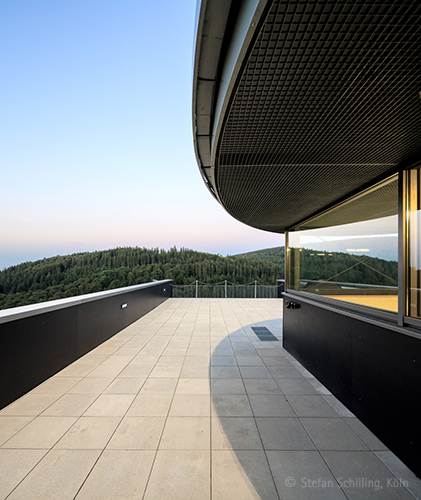Auch wurden Umweltbelange Gegenstand des konzeptionellen Ansatzes: Die Bekleidung des Bauwerks ist wiederum mit Lärchenholz. Die Einstandsfläche in den Hang ist minimiert. An der Unterseite wurden Kästen für Fledermäuse integriert. Die „Flugbereitschaft ist also in jeglicher Form“ sichergestellt.